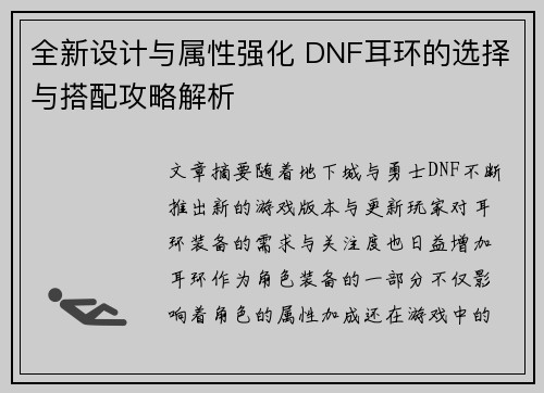 全新设计与属性强化 DNF耳环的选择与搭配攻略解析